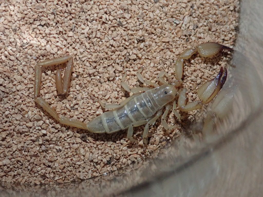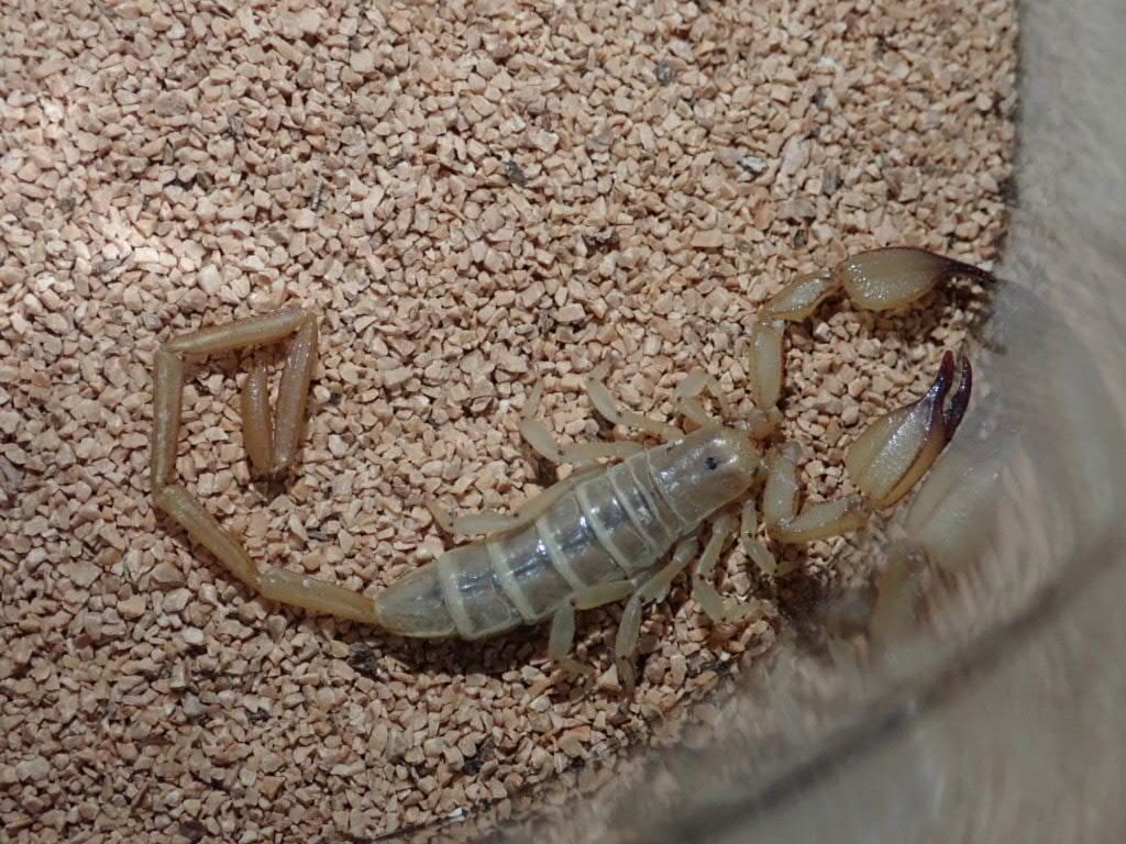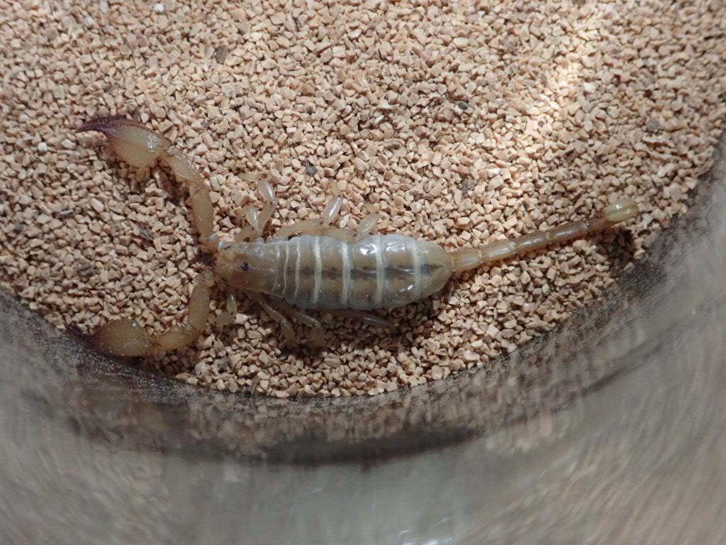 サソリの中でも特に強毒で中東ではサソリによる事故の大半は本種です。致死性の毒ですので絶対に触らないでください。扱いには気をつければ、飼育自体は難しくないと思います。未成年販売不可、新規の方は対面販売のみになります。必ず購入前にご連絡ください。